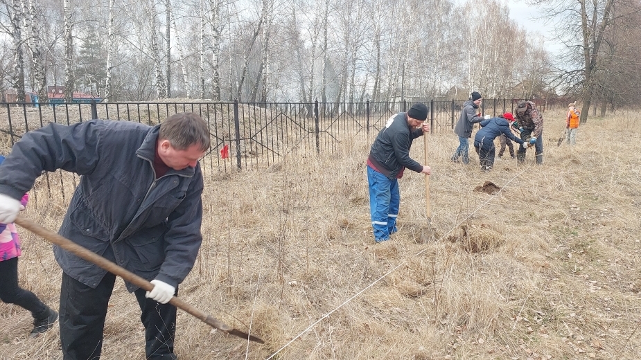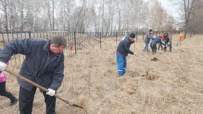 5 апреля жители села натянули шнурку, подготовили лунки под посадку. Школьники, молодежь и старожилы села принесли с собой инструменты и дружно принялись за работу.
