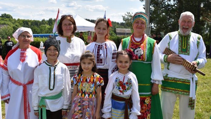 А на главной площадке прошло национальное дефиле, где жители поселений показали костюмы разных народов, – русский костюм, армянский и таджикский национальные костюмы, мордовский и молдавский, белорусский и азербайджанский. А также исполнили песни разных народов.