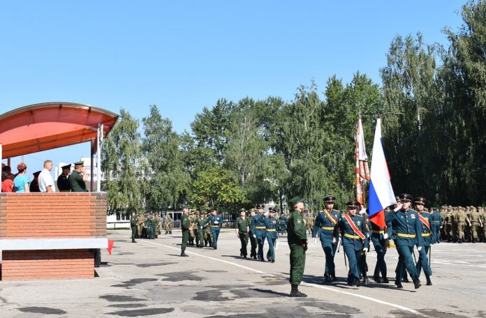 Сначала на территории части прошел торжественный митинг, посвященный 174-й годовщине со дня образования железнодорожных войск.