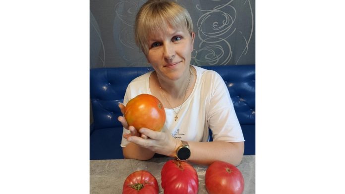 «Сорт называется «минусинский красный». Заказываю семена два года подряд из Минусинска, у местных любителей. Выращиваю в теплице. Все как у всех, в этом году внесли в почву навоз. Думаю в этом волшебства нет, в прошлом году помидоры были тоже довольно крупные.