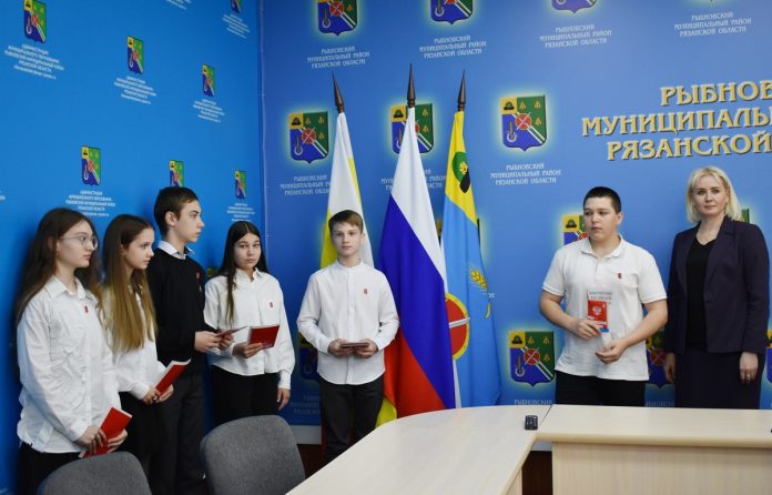 Паспорта получили восемь активных, спортивных и творческих ребят, участники «Движения первых» Рыбновского района. Школьников поздравили глава администрации Рыбновского района Елена Минкова.