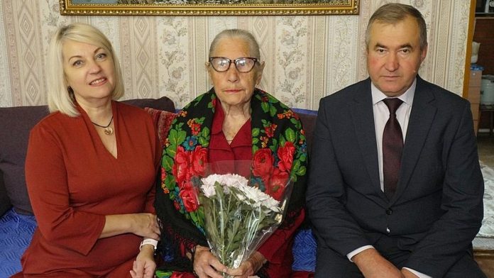 Эльвира Александровна передала поздравительное письмо от президента России Владимира Путина и подарок от главы администрации Рыбновского района Елены Минковой: